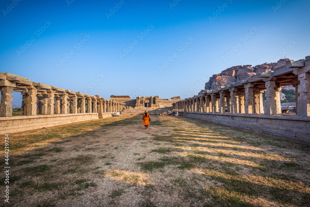Aancient bazaar street group monuments at Hampi was the centre of the Hindu Vijayanagara Empire in Karnataka, India