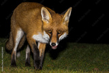 Red fox, Vulpes vulpes, standing in the grass in the night, Biebrza national park.
