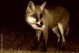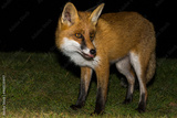 Red fox, Vulpes vulpes, standing in the grass in the night, Biebrza national park.