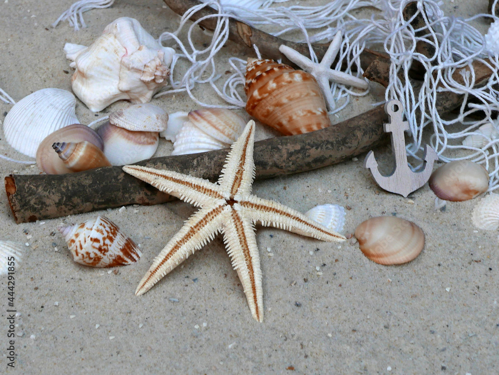 Seestern mit Muscheln im Sand
