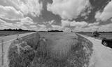 Beautiful high resolution panorama of a northern european country road with fields and green grass.
