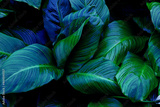 leaves of Spathiphyllum cannifolium, abstract green texture, nature background, tropical leaf