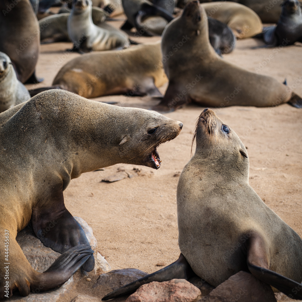 Seals at the Cape Cross Seal Reserve on the Skeleton Coast in Namibia. Cape Cross is home to one of the largest colonies of Cape fur seals in the world.