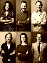 Group of beautiful people in front of a background