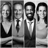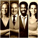 Group of beautiful people in front of a background