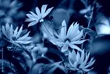 Jerusalem artichoke is an ornamental, forage and cultivated plant - beautiful yellow flowers on a blue background. Blooming perennial - autumn