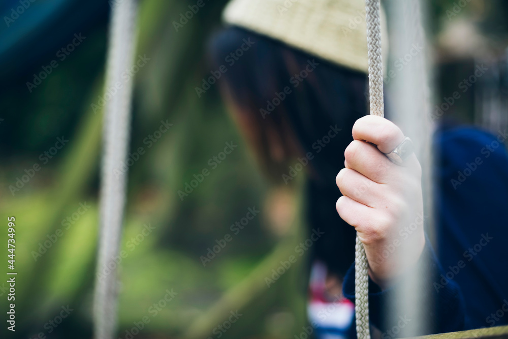 Lonely woman sitting on the swing