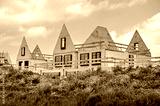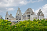 Valkenburg, The Netherlands, July 11, 2021: prefab concrete construction frame of several new family houses on a building site in summer