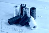 Set of colorful colored balls of thread on a light-colored wooden background.