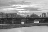 Wrocław. Mosty Osobowickie na tle wieczornego nieba.