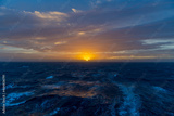 Beautiful seascape - waves and sky with clouds with beautiful lighting. Golden hour. Sunset at sea.