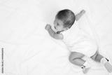 happy baby newborn on bed