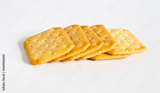 Dry cracker cookies or biscuits on background, concept of food.