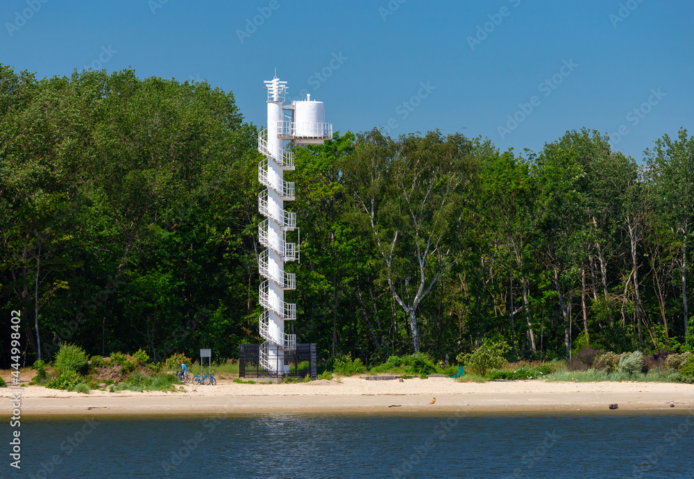 Swinoujscie. Lighthouse on a sunny day against the blue sky.