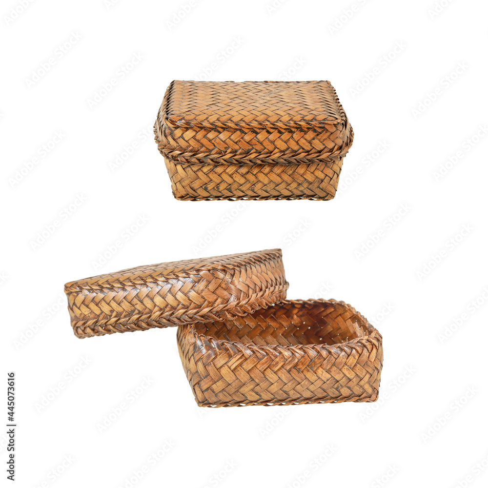 vintage weave bamboo box or basket isolated on white background with clipping path