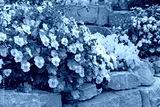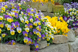 Blühende Hornveilchen, Viola cornuta, im Frühling