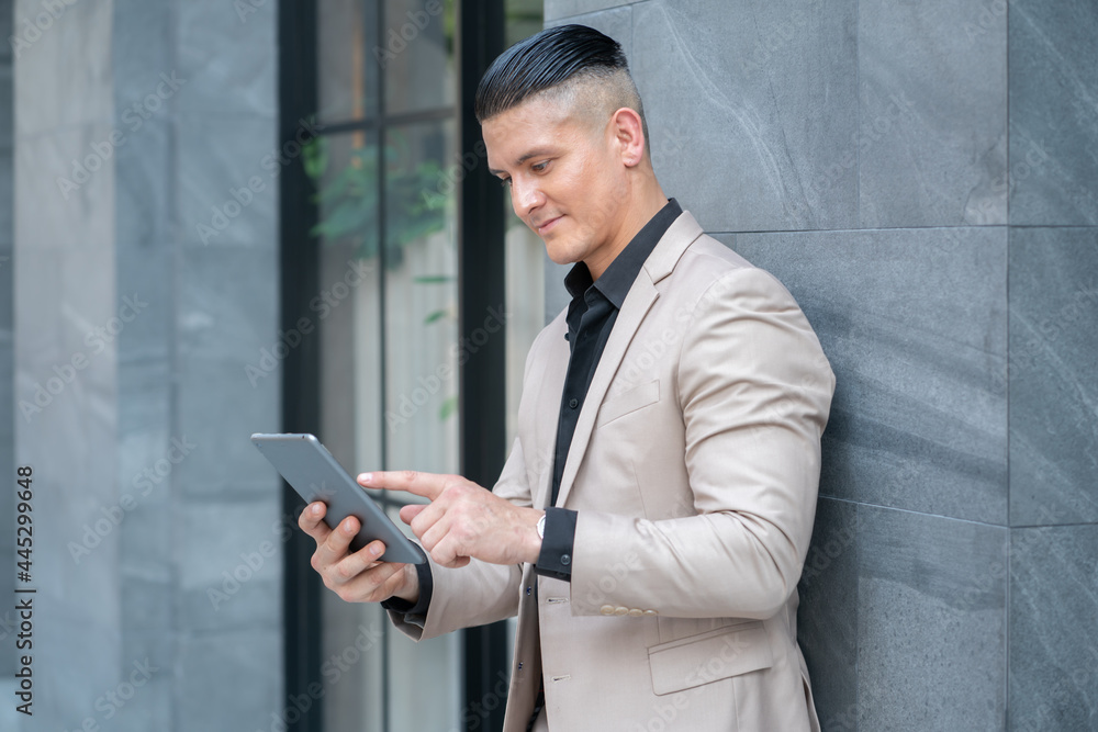 Business Man Confident Standing Full Suit and Holding Tablet Computer ,Business Success Concept..