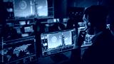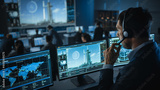 Flight Director Counts Down the Seconds Before Space Rocket Launch. Team in Mission Control Witness Successful Lift Off. Flight Control Employees Sit in Front of Computers and Monitor the Mission.