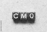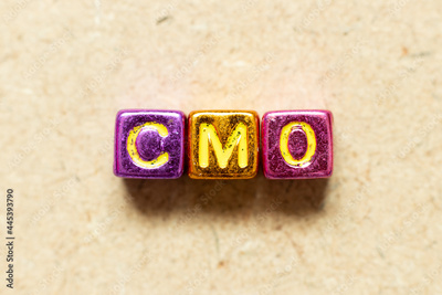 Metallic color alphabet letter block in word CMO (Abbreviation of Chief Marketing Officer, Contract Manufacturing Organization) on wood background