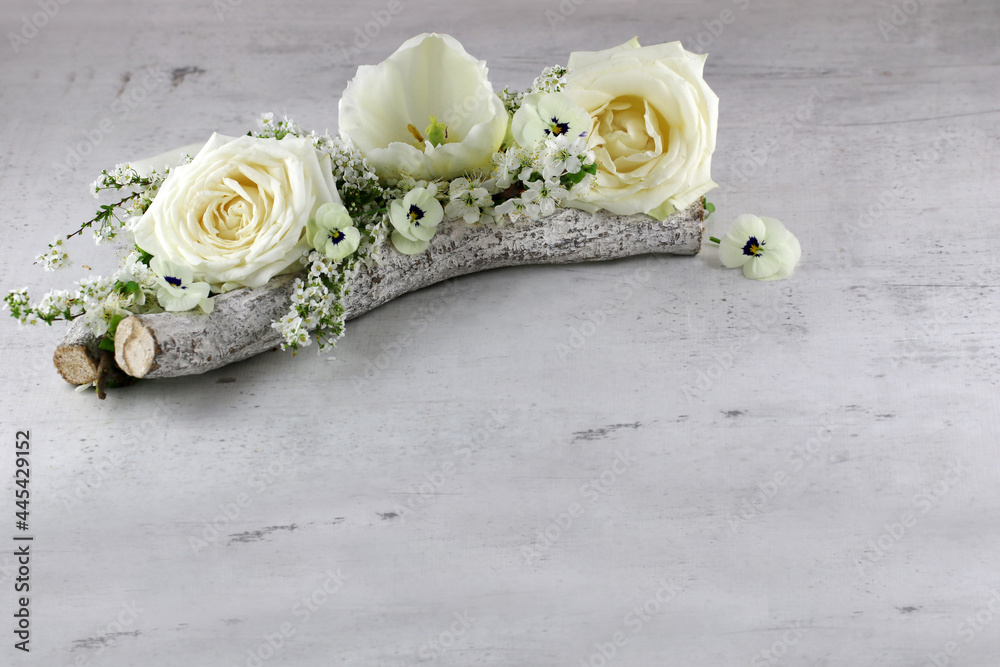 Flower decoration with tulips and roses