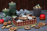 Weihnachtsgebäck mit weihnachtlicher Dekoration.