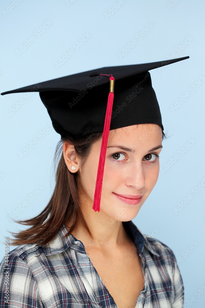 Portrait of a beautiful smiling girl in graduation cap