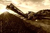 Heavy and mobile machinery in a quarry to transform stone into construction material