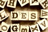 Alphabet letter block in word DES (Abbreviation of Delivered Ex Ship) with another on wood background