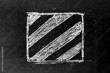 White chalk hand drawing in square with striped line shape on blackboard background