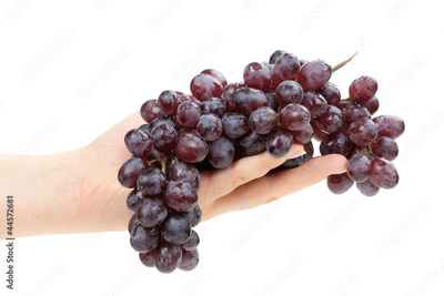 Bunch of grapes in female hand. Isolated.