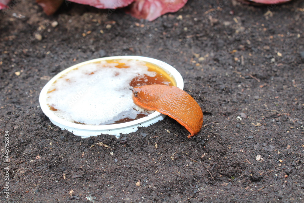 Schnecke an einer Bierfalle