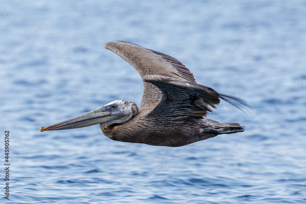 Brown Pelican Adult in Flight. Monterey Bay, California, USA.