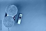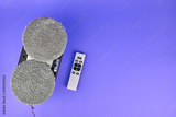 Window cleaning robot on a purple background. Cleaning the house with the help of smart devices. Robotic Window Cleaner for Glass Cleaning and a remote control.