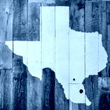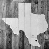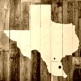 Pink Texas map on rustic wood wall.