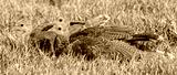 Wild Turkey Juveniles Resting with Caution. Quail Hollow Ranch County Park, Santa Cruz County, California, USA.