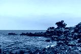 JEJU ISLAND, KOREA, SOUTH - Apr 04, 2016: Yongduam Rock on the Jeju Island surrounded by the sea during the sunset in South Korea