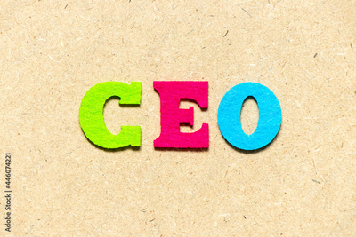 Color cloth alphabet letter in word CEO (Abbreviation of Chief Executive Officer) on wood background