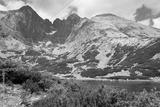 Scenic view of Skalnate Pleso (Rocky Tarn) and cable car heading to Lomnicky Stit peak in High Tatra mountains, Slovakia. Beautiful clean nature in Central Europe, cloudy day in summer