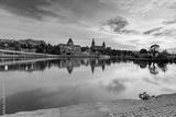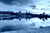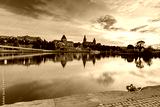 Panorama of National Museum and Voivodeship Office with reflection in river Oder at sunset, Szczecin, Poland