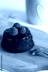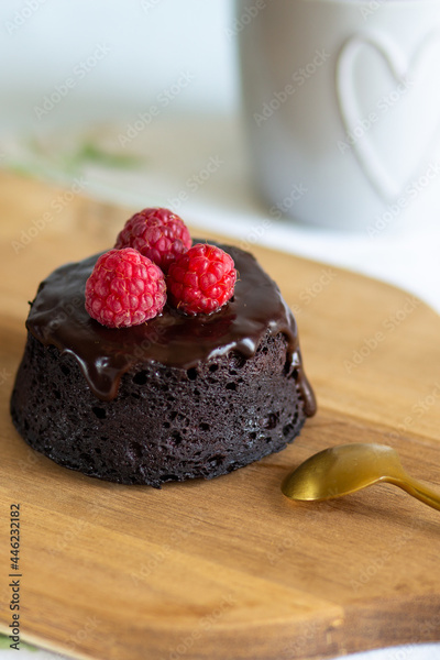 chocolate fondant cake. Mini cake for fondant with icing. Delicious dessert.Homemade chocolate lava cake. Fondant Lava Cupcake.Warm chocolate dessert.Chocolate cake.Cupcake with berries.Sweet.