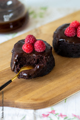 chocolate fondant cake. Mini cake for fondant with icing. Delicious dessert.Homemade chocolate lava cake.Fondant Lava Cupcake.Warm chocolate dessert.Chocolate cake.Cupcake with berries.Sweet. Breakfa