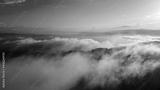Aerial sunset view over the Blue Ridge Mountains from the aircraft. Sky with clouds. Sky background.