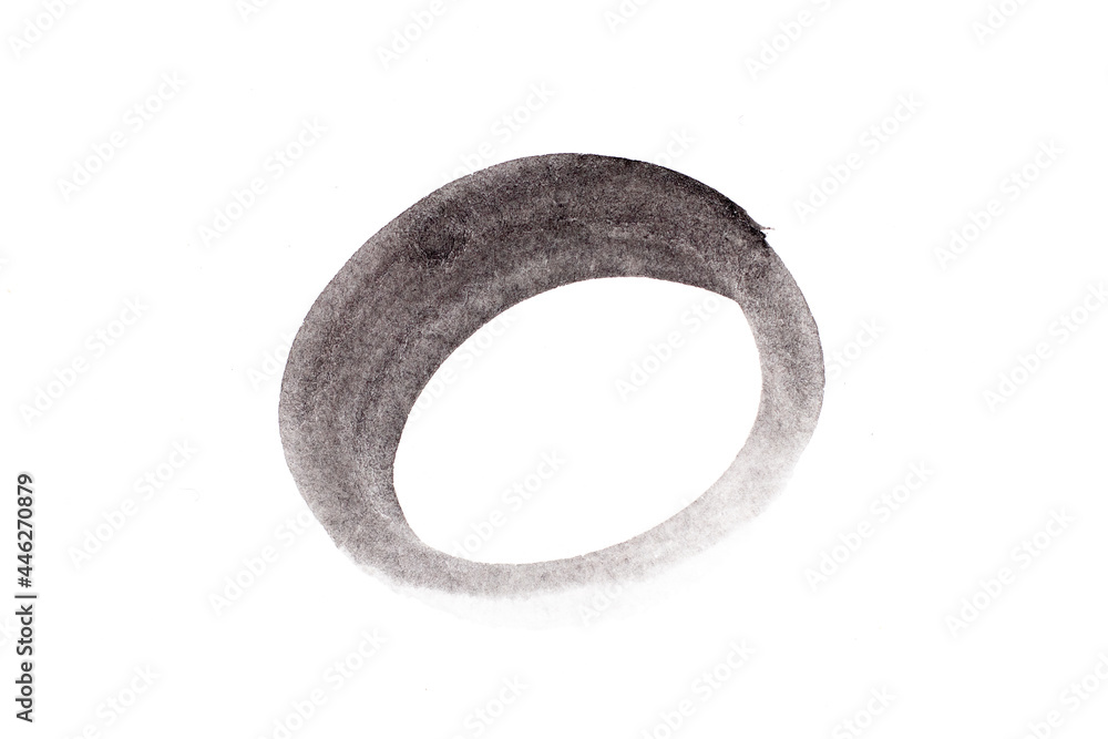 Black color watercolor drawing in round brush or banner shape on white paper background