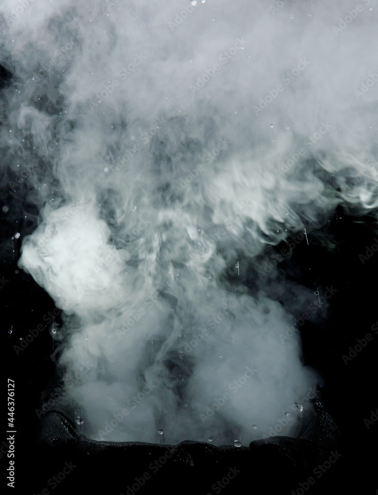 concept photo of scary eruption event of volcano smoke explosion, huge column of smoke in the sky isolated on black background. poster element.