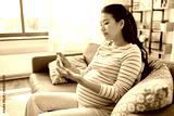 pregnancy, health and glycemia concept - pregnant asian woman checking blood sugar level with glucometer and lancing device at home