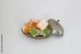 Turkish delight dessert in plate on white background