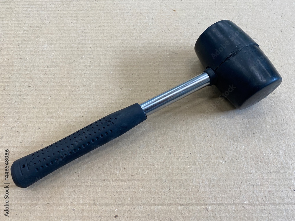 A black metal mallet with a rubber coating on a light isolate. Scoring tool