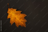 Autumn background.Top view of dry yellow leaf on the black background. Copy space.