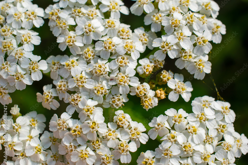 blooming yarrow herb on light meadow