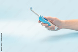 Electric Toothbrush In man Hand. Hand holding electric toothbrush. dentist advises. man showing electric toothbrush. Healthy teeth. Dental care. copy space